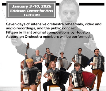 The Erickson Center for the Arts will host Stas Venglevski and the Houston Accordion Orchestra Recording Project Camp January 4 - 9, 2026.