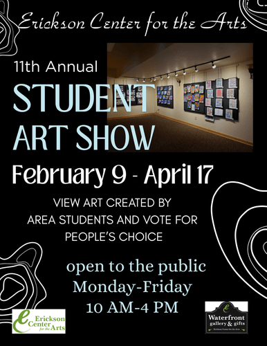 The Erickson Center for the Arts Annual Student Art Show will be held in the Waterfront Gallery February 9th through April 17th.